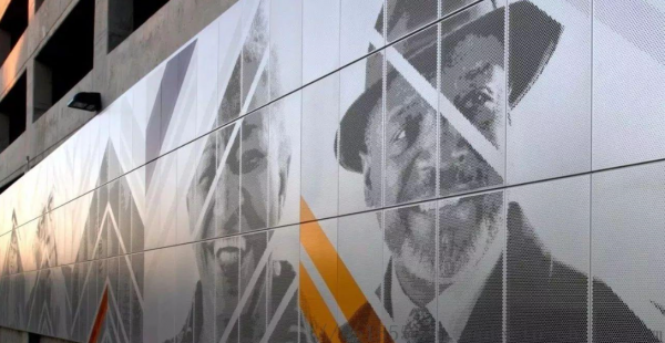 冲孔铝单板就是在铝单板上用专业数控设备冲压上各种各样孔型的板材,就叫做冲孔铝单板,冲完各式各样的孔后经过折弯机压边,外表做氟碳,或粉末喷涂,不让铝板自然氧化,或是为的美观,做上各种喜爱的颜色,让铝单板变的五彩缤纷,安装在建筑上,起到装饰美化效果。幕墙冲孔铝单板质感独特,色泽丰富、持久,而且外观形状可以多样化,并能与玻璃幕墙材料、石材幕墙材料完美地结合。